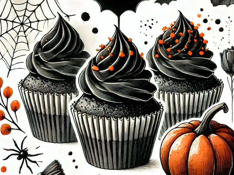These Halloween Black Velvet Cupcakes are the perfect blend of eerie and elegant, with their deep black hue and rich, moist crumb. Topped with a